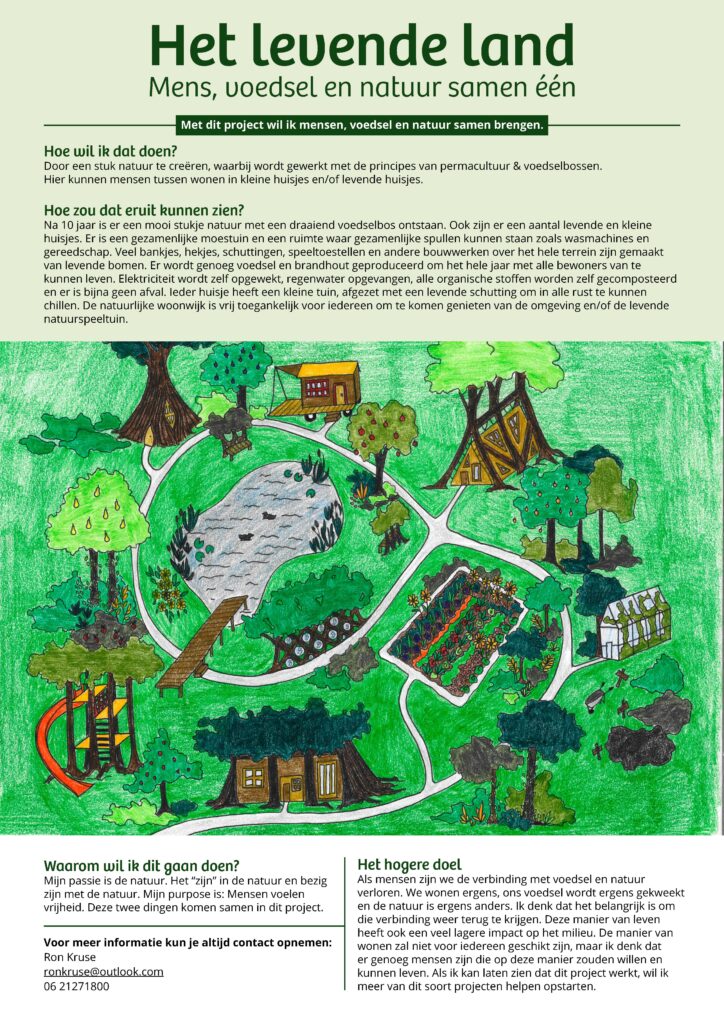 Ikzelf zit nog op school, ik studeer om docent techniek te worden. Voor mijn opleiding heb ik de minor Project van je Leven mogen doen. Dit is voor mij een geweldige kans geweest. Tijdens deze minor kreeg ik een half jaar de tijd en begeleiding om een project wat al tijden in mijn hoofd zit vorm te geven: het levende land. Hieronder vind je hierover meer informatie. Naast de start van dit mooie project, is ook deze site tijdens deze minor ontstaan.
